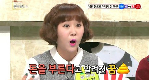 그는 이어 "기분 좋게 깨서 남편에게 복권 두 장을 사오라고 만원을 줬는데 다 꽝이었다"며 "만약 당첨이 됐다면 내가 꾼 꿈이 좋아서 된 거다. 부부는 일심동체고 내가 그런 텔레파시를 보내서 당첨된 거니까 당첨금은 내 것"이라고 말해 웃음을 자아냈다.