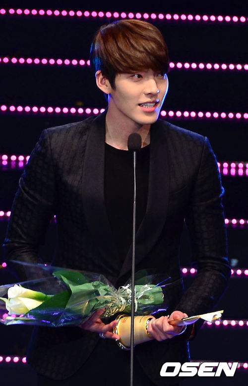 17일 오후 서울 올림픽공원 올림픽홀에서 열린 2014 아시아모델 시상식에서 아시아특별상을 수상한 배우 김우빈이 소감을 말하고 있다.