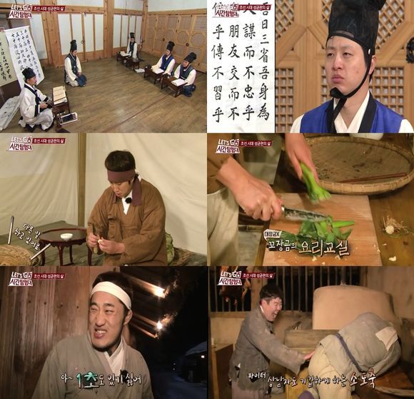 시간탐험대원 7인방은 지난주 방송에서 성균관 유생과 그들을 보필하는 반인의 역을 정하기 위해 성균관 입학시험을 치렀으며, 결과에 따라 남희석, 유상무, 조세호, 이상준은 성균관 유생으로, 장동민, 김주호, 김동현은 반인으로 분해 성균관에서의 다채로운 삶을 보여준 바 있다.