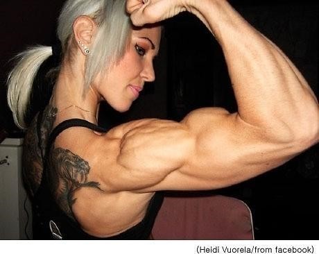 사진 속 인물은 스웨덴 출신의 '피트니스 디바' 하이디 부오렐라다. 부오렐라는 "고통이 없으면 얻는 것도 없다(No pain No gain)"는 좌우명 아래 혹독한 식이요법과 운동으로 몸을 만드는 것으로 유명하다. 남자 못지 않은 무시무시한 팔뚝의 두께가 그의 노력을 대변한다.