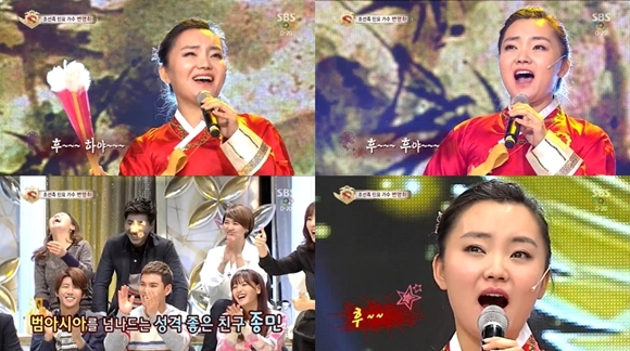 특히 변영화 씨는 이날 '스타킹'에서 완벽한 고음으로 '새타령'과 '아리랑', 조수미의 '나 가거든' 등의 무대를 꾸며 시청자들을 사로잡았다.