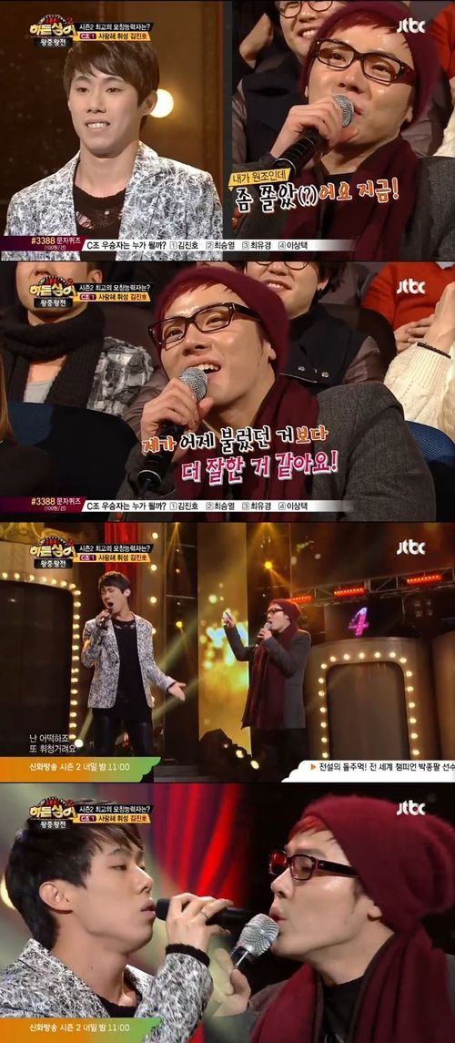 김진호의 무대가 끝난 후 전현무는 휘성에게 "휘성 씨, 왜 이렇게 움츠러드셨나?"라고 물었고 휘성은 "방금 (김진호가)부른 노래를 어제 콘서트에서 불렀는데 내가 어제 부른 것보다 잘했다. 좀 쫄았다"라고 말하며 자신의 팬이자 모창 능력자의 실력에 감탄했다.