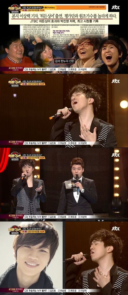 이상택은 18일 오후 11시 방송된 JTBC 예능프로그램 '히든싱어2'에서 박진영의 '너의 뒤에서'를 열창했다.