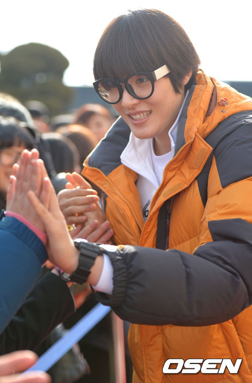 19일 오후 경기도 수원시 실내체육관에서 열리는 'NH농협 2013~2014 V리그 올스타전'을 앞두고 김희진이 팬들과 인사를 나누며 레드카펫을 밟고 있다.