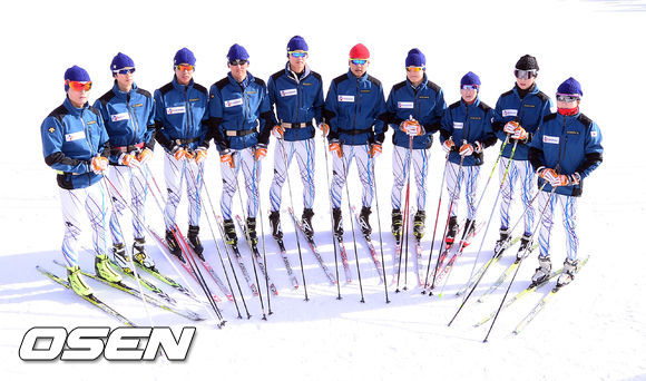 19일 강원도 평창 알펜시아 리조트에서 진행된 '소치 동계올림픽 스키 미디어데이 행사에서 크로스컨트리 대표팀이 포즈를 취하고 있다.