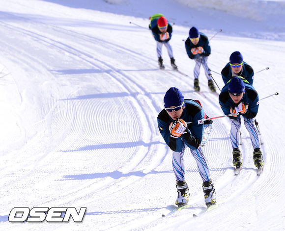 19일 강원도 평창 알펜시아 리조트에서 진행된 '소치 동계올림픽 스키 미디어데이 행사에서 크로스컨트리 대표팀이 훈련을 하고 있다.