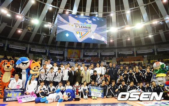 흥겨운 축제의 장, V리그 올스타전에서 K스타가 V스타를 꺾고 승리를 거뒀다.