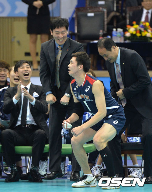 남자부는 '젊은 피'가 중심이 돼 세리머니를 펼쳤다. 전광인(한국전력), 송명근, 이민규 등이 춤과 함께하는 다양한 세리머니를 선보였고, 진상헌은 의자까지 동원해 세리머니를 펼치려 했으나 공격이 실패하면서 세리머니의 꿈도 함께 무산됐다.