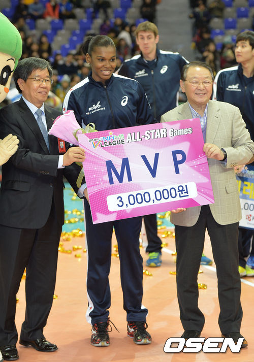 19일 수원실내체육관에서 열린 NH농협 2013-2014시즌 V리그 올스타전서 K스타가 1~4세트 합계 58-51로 V스타에 승리를 거뒀다. 삼성화재, 현대캐피탈, LIG손해보험, IBK기업은행, 현대건설, 흥국생명으로 구성된 K스타는 대한항공, 우리카드, 한국전력, 러시앤캐시, GS칼텍스, 도로공사, KGC인삼공사로 구성된 V스타를 세트스코어 3-1, 합계 58-51로 물리치고 축제의 장에서 승리라는 보너스를 받았다.