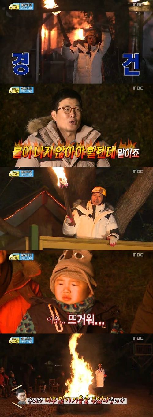 김성주는 "불이 아빠와 아이들을 뒤로 물러서게 만들었다"고 상황을 중계했고, 윤민수는 "거의 산불 수준"이라고 말해 웃음을 자아냈다.
