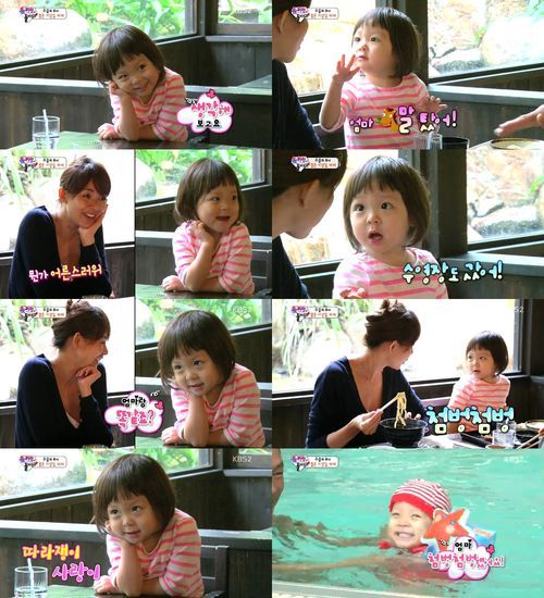 이어 추사랑의 폭풍자랑이 시작됐다. 아빠와 함께 말을 타고 수영장에서 놀았던 걸 줄줄이 늘어놨다. 추사랑은 엄마에게 "물 속에서 첨벙첨벙 했다"며 손으로 흉내를 냈고 "말을 탔다"며 자랑했다.