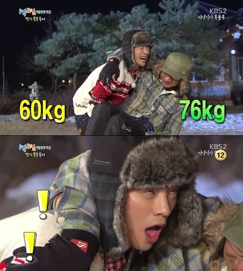 60kg인 정준영이 자신과 16kg 차이가 나는 스태프를 안고 미션을 수행하며 큰 웃음을 선사했다.