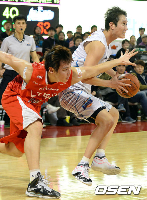 4쿼터, SK 김부경이 KCC 이한권에게 블록을 하고 있다. /ouxou@osen.co.kr