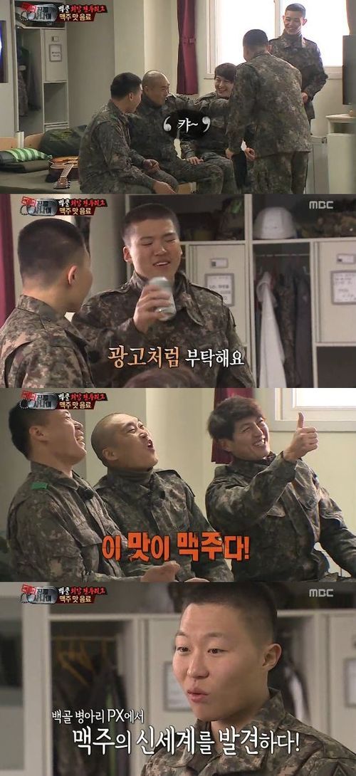 병아리 신병은 처음 마셔보는 맥주맛 음료에 감탄하며 놀란 표정을 감추지 못했다.