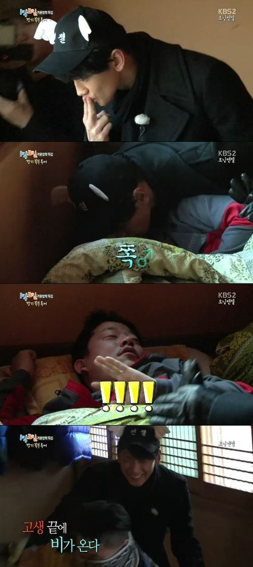 가수 비가 '1박 2일'의 모닝 엔젤로 출연, 멤버들 전원을 당황시켰다.