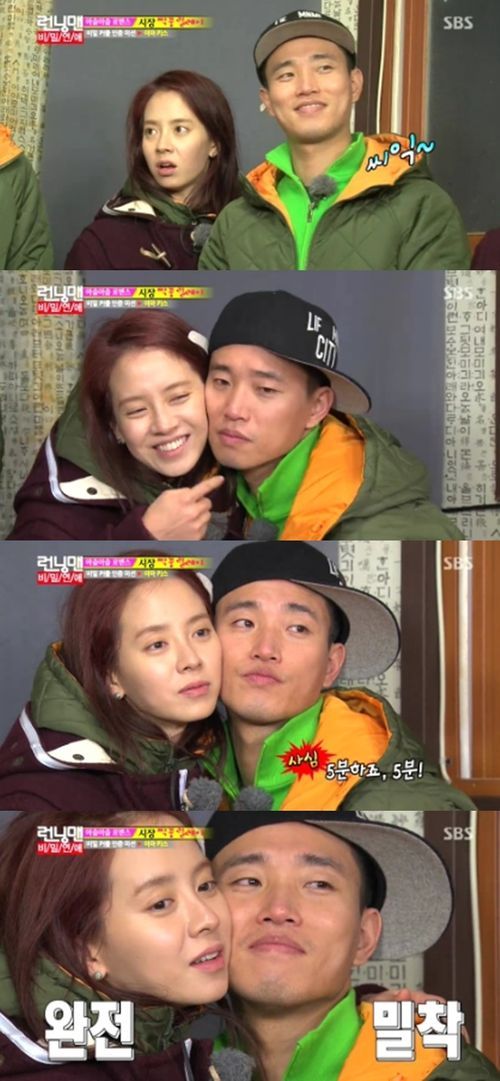 개리는 19일 방송된 SBS 예능 프로그램 '일요일이 좋다 - 런닝맨'에서 '시장에서 사온 물건을 파트너와 볼 사이에 낀 채 1분을 버티라'는 미션을 전달받은 후 '씨익' 웃었다. 파트너가 '런닝맨' 월요커플 송지효였던 것.