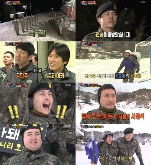 먼저 진행된 경기는 군장 축구였다. 설원 위에서 빙판이 된 경기장은 군장까지 멘 부대원들에게 쉬운 상대가 아니었다. 그럼에도 멤버들을 비롯한 부대원들은 넘어지면서도 오직 휴가를 위한 싸움을 이어갔다.