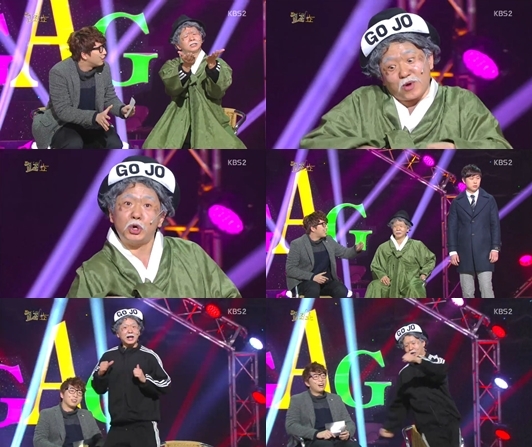19일 오후 방송된 KBS 2TV 예능프로그램 '개그콘서트'에는 박성호가 메인으로 나선 코너 ‘고조쇼’를 공개했다. 이날 박성호는 화려한 원맨쇼로 보는 이들의 시선을 사로잡았다.