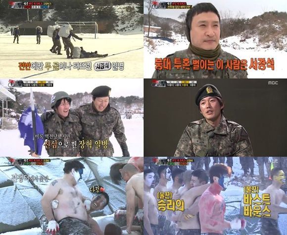 이 뿐 아니다. 멤버들에게 상의 탈의는 일상이 됐다. 새하얀 설원 위에서 상의를 탈의한 채 힘겨운 훈련이 진행됐다. 멤버들은 20대 초반의 동료들과 함께 추위도 이긴 채 백골의 전의를 불태웠다.