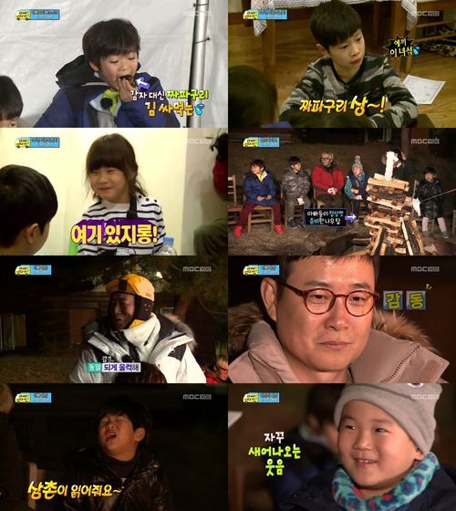 이날 아이들은 여행 중 아빠들이 만든 음식 중 가장 맛있었던 것들을 제각각 뽑아왔다. 예상대로(?) 김성주의 ‘짜파구리’와 윤민수의 ‘둥근면이 떴습니다’, ‘카레치킨’이 뽑혔고, 성동일의 아들 성준은 첫 여행 날 아침 미처 식사를 준비하지 못했던 아빠가 처음으로 해줬던 김에 싼 감자를 택해 눈길을 끌었다. 또 윤후는 아빠의 음식이 아닌 김성주의 ‘라면땅’을 선택해 아빠들에게 의아함을 주기도 했다.