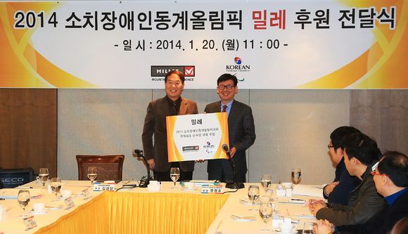 프랑스 정통 아웃도어 브랜드 밀레(㈜MEH)의 한철호 대표이사가 2014 소치 장애인 동계 올림픽 대회를 공식 후원하는 동시에 대한장애인체육회로부터 선수단장으로 임명돼 20일 중구 프레스센터에서 후원 전달식을 가졌다.