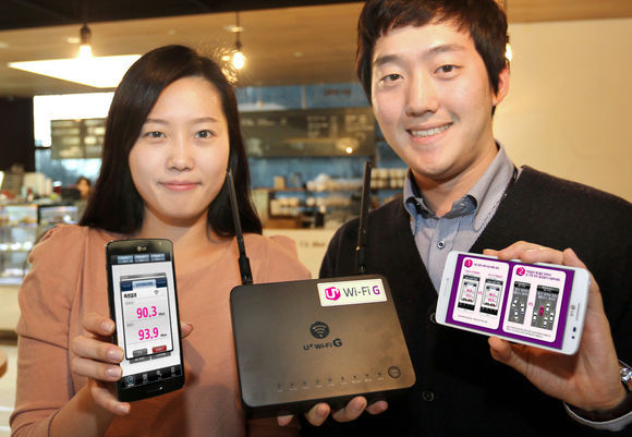 ‘U+ Wi-Fi G’ 서비스는 차세대 무선랜 국제표준규격인 802.11ac를 적용하고, 5GHz와 2.4GHz 주파수 두 개를 모두 이용할 수 있는 듀얼밴드 기술을 탑재해 기존 와이파이보다 3배 이상 빠른 100Mbps급의 속도를 구현했다.