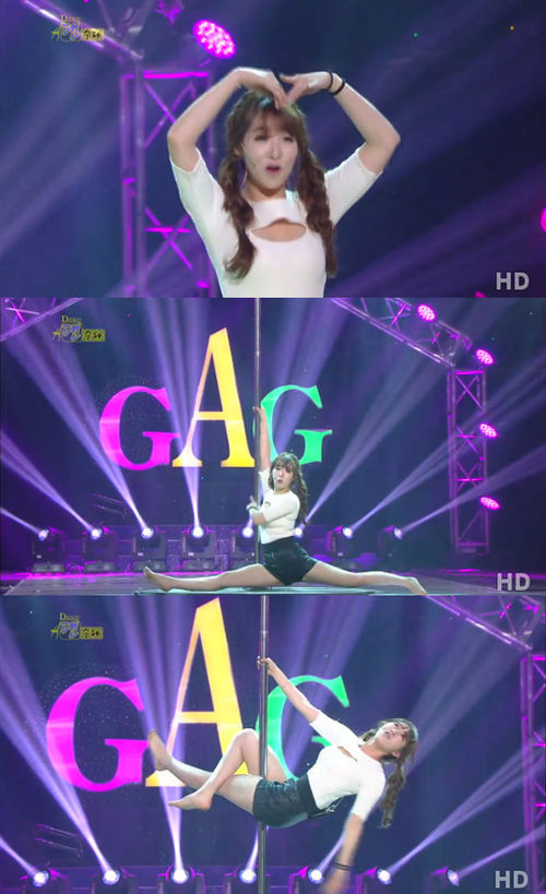안소미는 19일 방송된 KBS 2TV 예능프로그램 ‘개그콘서트’의 '댄수다' 코너에서 아찔한 폴댄스를 선보여 시청자들의 이목을 집중시켰다.