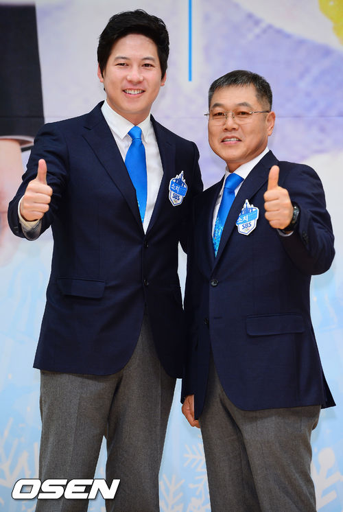 20일 오후 서울 양천구 SBS 목동사옥에서 열린 2014 소치 동계올림픽 해설자-캐스터 기자간담회서 박찬민 캐스터와 어재석 해설이 포토타임을 갖고 있다.