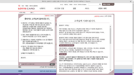 롯데카드 정보유출 확인방법은 일단 해당 카드사 홈페이지에 접속하면 쉽게 알수 있다. 롯데카드 정보유출도 타사들과 마찬가지로 그 범위가 넓고 깊다. 개인 주소는 물론이고 어지간한 금융정보는 다 외부로 흘러나갔기 때문이다.