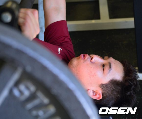 오전 훈련을 마친 허도환이 힘차게 바벨을 들어올리고 있다./spjj@osen.co.kr