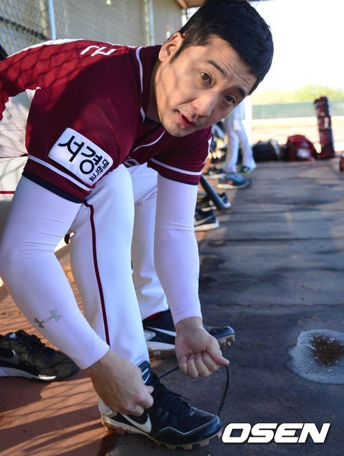 오전 훈련을 하기 위해 이택근이 스파이크 끈을 졸라메고 있다./spjj@osen.co.kr