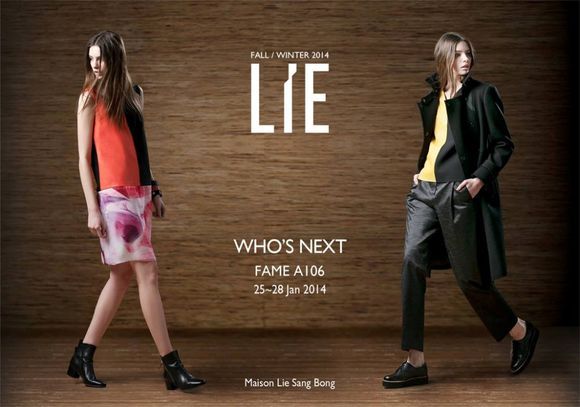이번 시즌 후즈 넥스트에 참가하는 LIE(라이)의 14F/W 컬렉션은 매니시한 기본 바탕에 스포티한 요소들을 라이만의 감성으로 접목시킨 룩으로 구성되어 있으며, 라이의 강점인 군더더기 없는 테일러링 재킷과 코트에 흥미로운 소재들의 디테일 믹스를 시도한 특징을 내세운다.