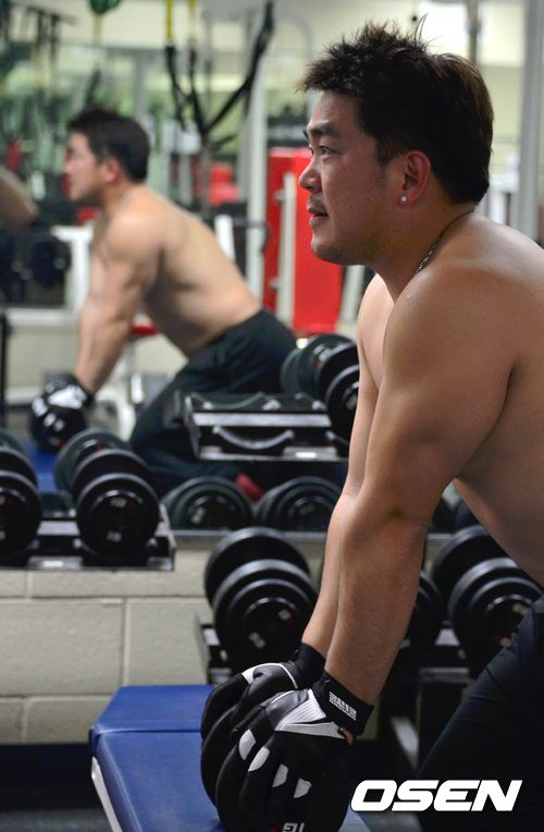 저녁 식사 후 벌어진 야간훈련에서 마정길이 웨이트 트레이닝을 하고 있다./spjj@osen.co.kr