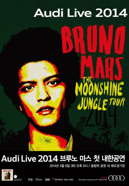 부르노 마스의 첫 내한공연 '아우디 라이브 2014 브루노 마스 내한공연'은 오는 4월 8일 서울 올림픽공원 내 체조경기장에서 열린다.