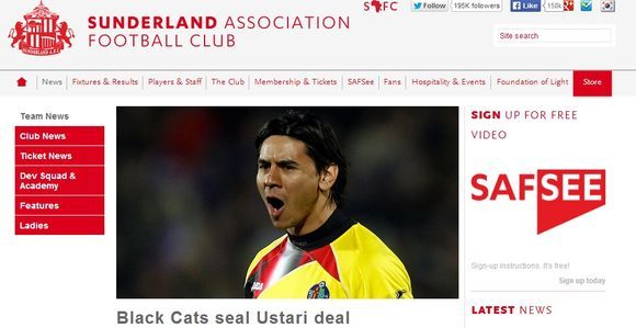 선덜랜드 공식 홈페이지.