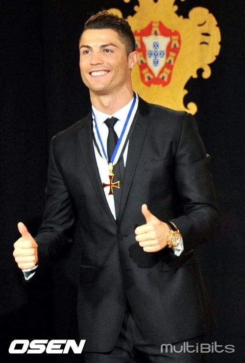 [OSEN=스포츠부] 2013 국제축구연맹(FIFA) 발롱도르 수상자 크리스티아누 호날두(29, 레알 마드리드)가 포르투갈 대통령으로부터 훈장을 받았다.