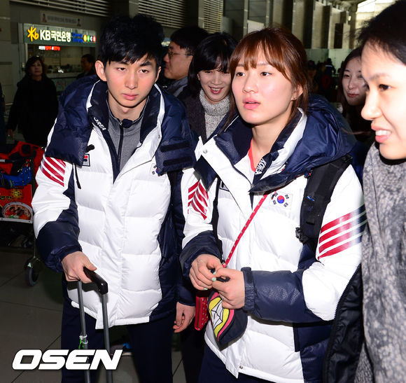 박승희 박세영 남매가 입국장에 들어서고 있다.