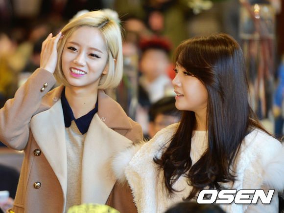 걸스데이 혜리와 민아가 팬들과 취재진을 향해 포즈를 취하고 있다.