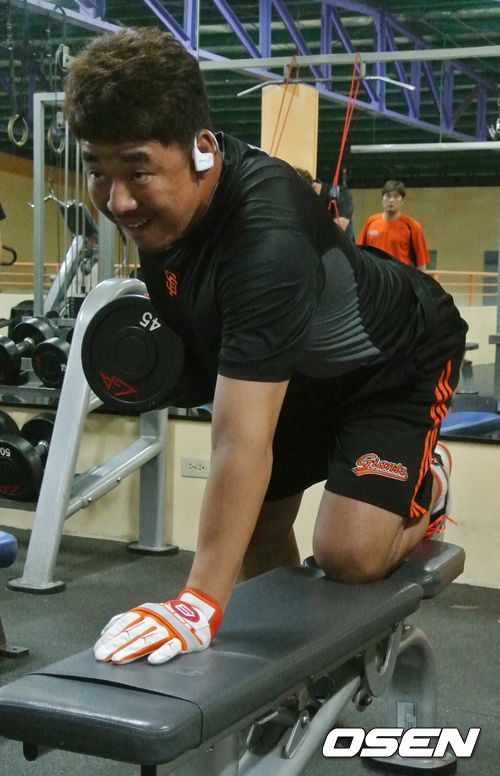 롯데 자이언츠 투수 김사율이 22일 1차 캠프가 차려진 사이판의 한 피트니스 센터에서 체력 훈련을 소화하고 있다. 롯데는 지난 15일부터 3월 4일까지 49일간 미국 애리조나와 사이판 그리고 일본 가고시마에서 2014시즌 해외 전지훈련을 실시한다.