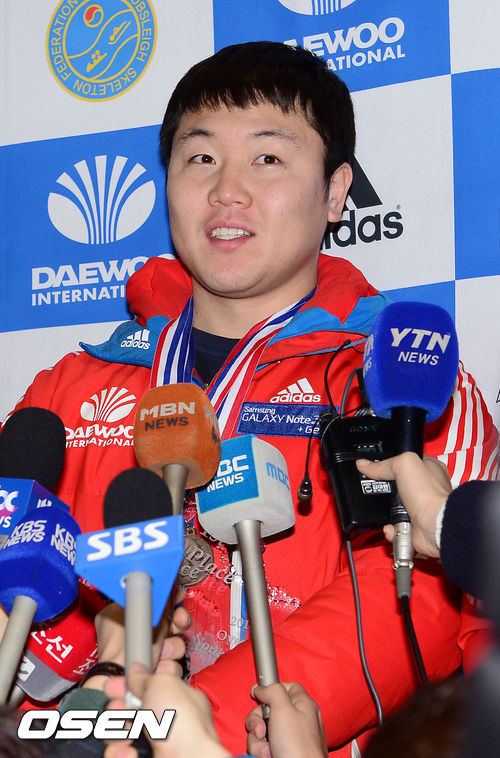 봅슬레이 대표팀 윤윤종이 인터뷰를 하고 있다