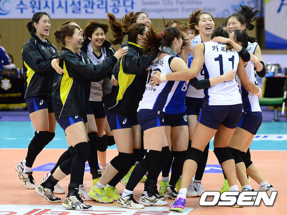 IBK기업은행은 22일 화성실내체육관에서 열린 '2013-2014 NH농협 V-리그' 여자부 KGC인삼공사와의 경기에서 카리나-김희진-박정아로 이어지는 삼각편대가 날개를 활짝 편 끝에 3-0(25-21 25-19 25-16)으로 완승했다. 깔끔한 후반기 시작을 알린 기업은행(승점 41점)은 2위 GS칼텍스(승점 35점)로부터 한걸음 앞서 나갔다. 인삼공사(승점 25점)는 3위 자리 수성에 비상이 걸렸다.