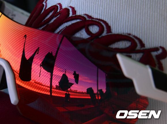 펜스에 말리고 있는 선수들의 유니폼이 선글라스에 투영 되고 있다./spjj@osen.co.kr