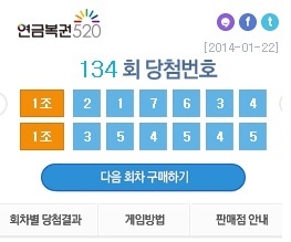 22일 추첨된 연금복권 134회 당첨번호는 1조 354545번와 1조 217634번 이다.