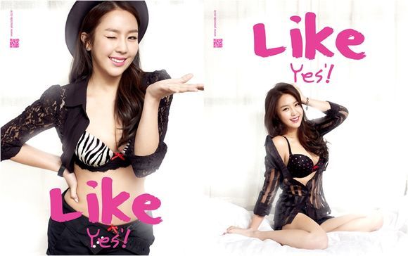이 브랜드 전속모델인 그는 터질 듯한 가슴을 파격적으로 노출하는 속옷 화보를 통해 섹시미를 강조했다.
