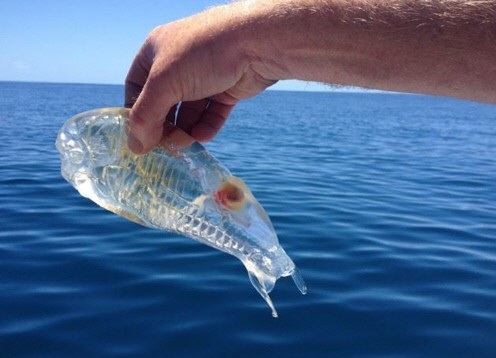 투명인간 닮은 물고기는 뉴질랜드 해안에서 어부 스튜어트 프레이저가 아들과 낚시를 하다가 잡아 사진을 찍어 공개했다.