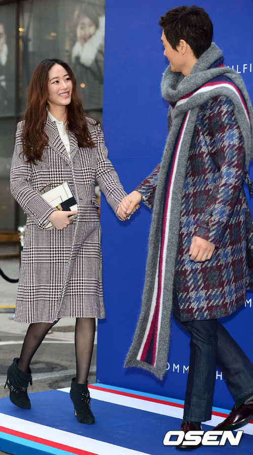 23일 오후 서울 강남구 신사동 타미 힐피거(Tommy Hilfiger) 가로수길 플래그쉽 스토어에서 열린 타미 힐피거 가로수길 플래그쉽 스토어 오픈 포토월 행사, 유지태 김효진 부부가 포토월로 향하고 있다.