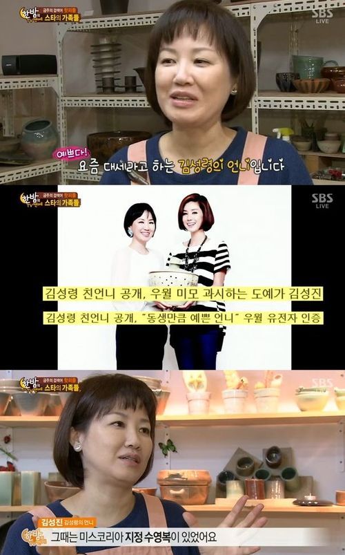 김성령의 언니 김성진 씨는 지난 22일 오후 방송된 SBS '한밤의 TV연예'에 출연, 김성령 못지않은 미모로 눈길을 끌었다.