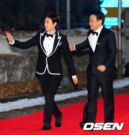 슈퍼주니어 은혁과 개그맨 서경석이 레드카펫을 밟고 있다.