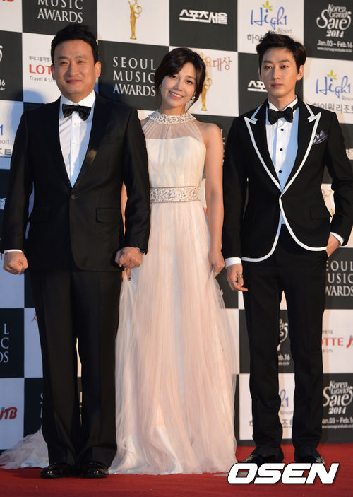 에이핑크 정은지, 서경석, 은혁이 포토타임을 고 있다.