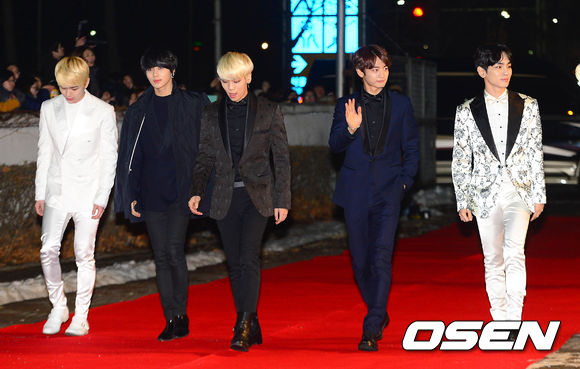 걸그룹 샤이니가 레드카펫을 밟고 있다.
